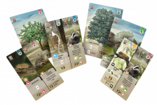 - Drugą grupę stanowią zwierzęta i rośliny. Zagrywamy je w odpowiednich miejscach pod kartami drzew, krzewów i terenów, przestrzegając określonych zasad rozmieszczenia. Karty zwierząt i roślin są podzielone – podczas zagrywania musimy zdecydować, z której strony korzystamy i tę właśnie pozostawiamy widoczną.