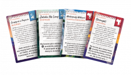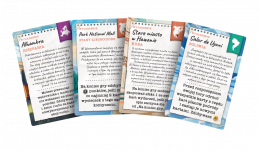 - 48 kart wycieczek/wydarzeń zabierze nas w podróż do najciekawszych miejsc z całego świata. Znajdziemy na nich przepiękne ilustracje oraz klimatyczne opisy, dzięki którym gra zyskuje edukacyjny charakter.